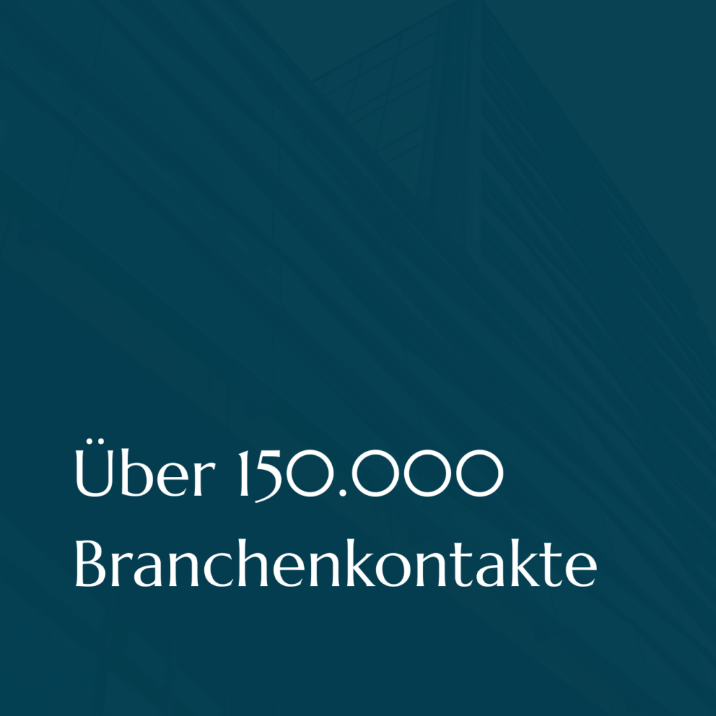 Mit über 150.000 Branchenkontakten verfügen wir über einen Zugang in nahezu jedes Unternehmen, für das Sie tätig werden wollen.